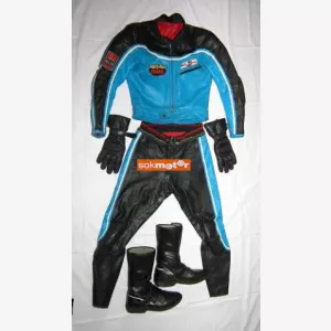 Eladó komplett motoros cucc. Nagyon jó állapotban lévő, 52-es összecipzározható, 1.5 mm marhabőr ruha, 43-44es csizma, L-es kesztyű. Robogóra ill. speed-re tökéletes.