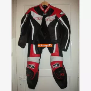 Eladó SPYKE márkájú bőr, kétrészes, 44 D méretű piros-fekete-fehér színű térd-, váll-, hát-, könyök-protektorral ellátott hibátlan állapotú, mindössze párszor használt motoros ruha. Kb. 165-175 cm-es, max. 60 kg-os emberre lehet jó. Nagyon szép, kitűnő állapotú ruha, fiúnak és lánynak egyaránt alkalmas.